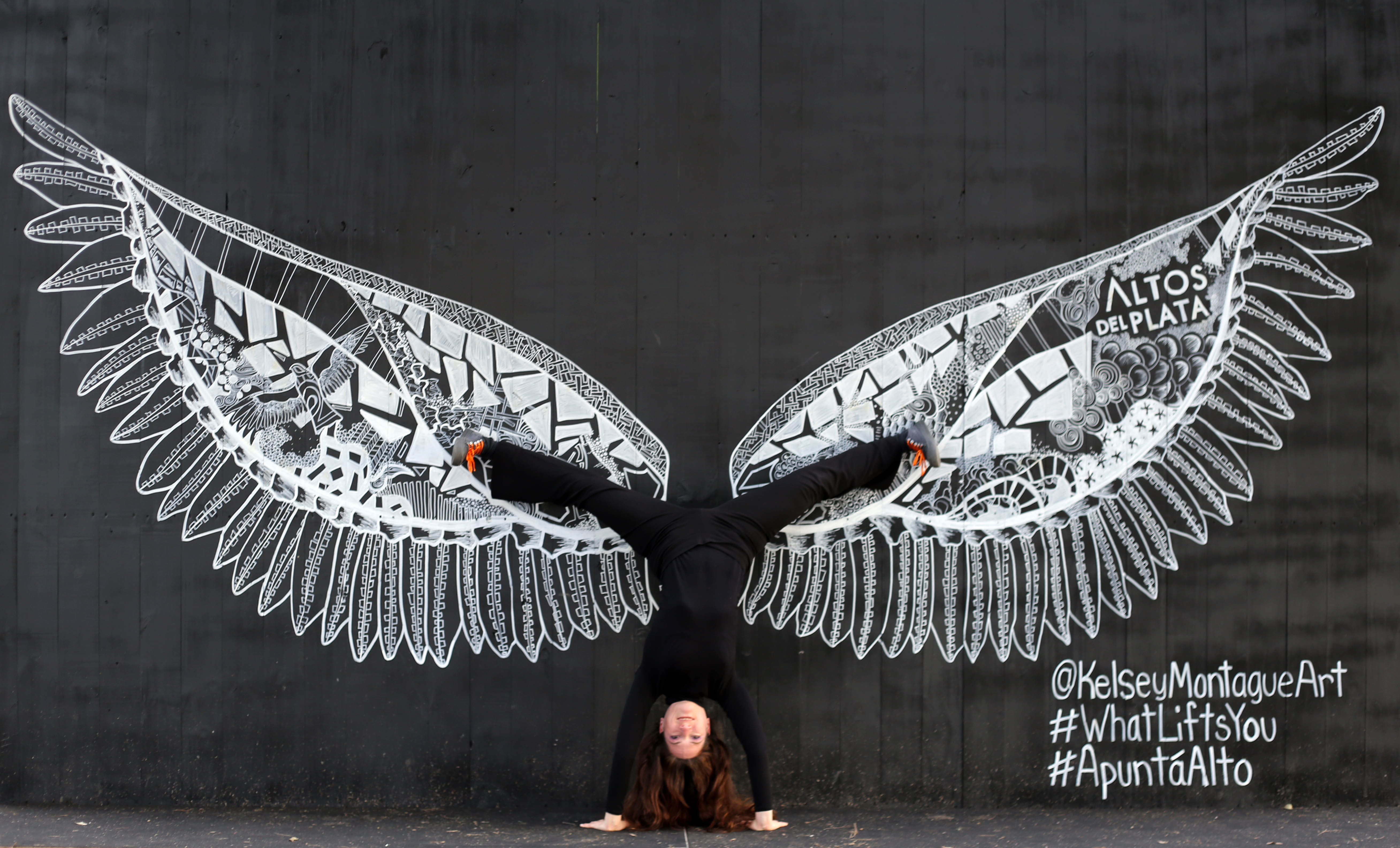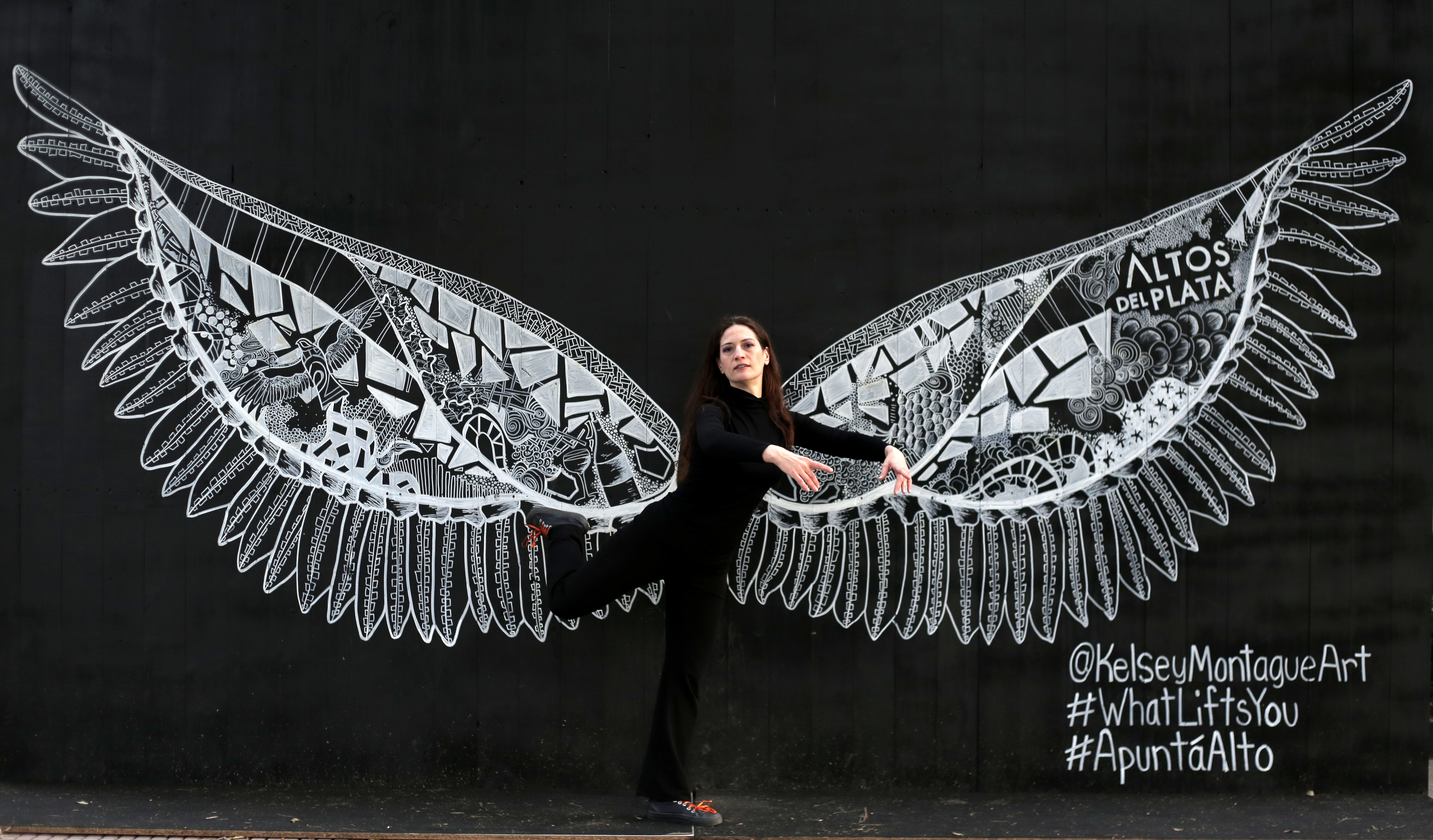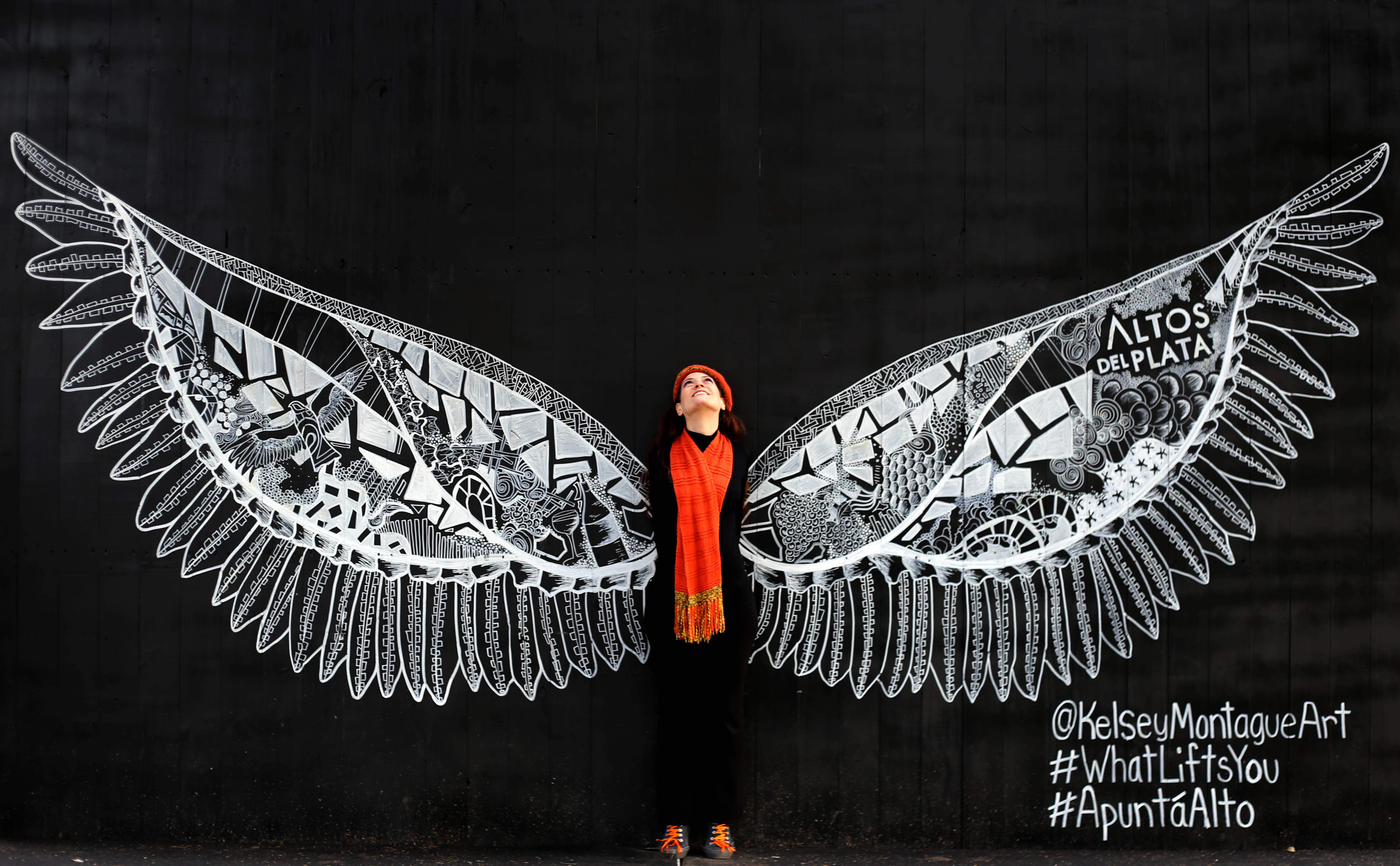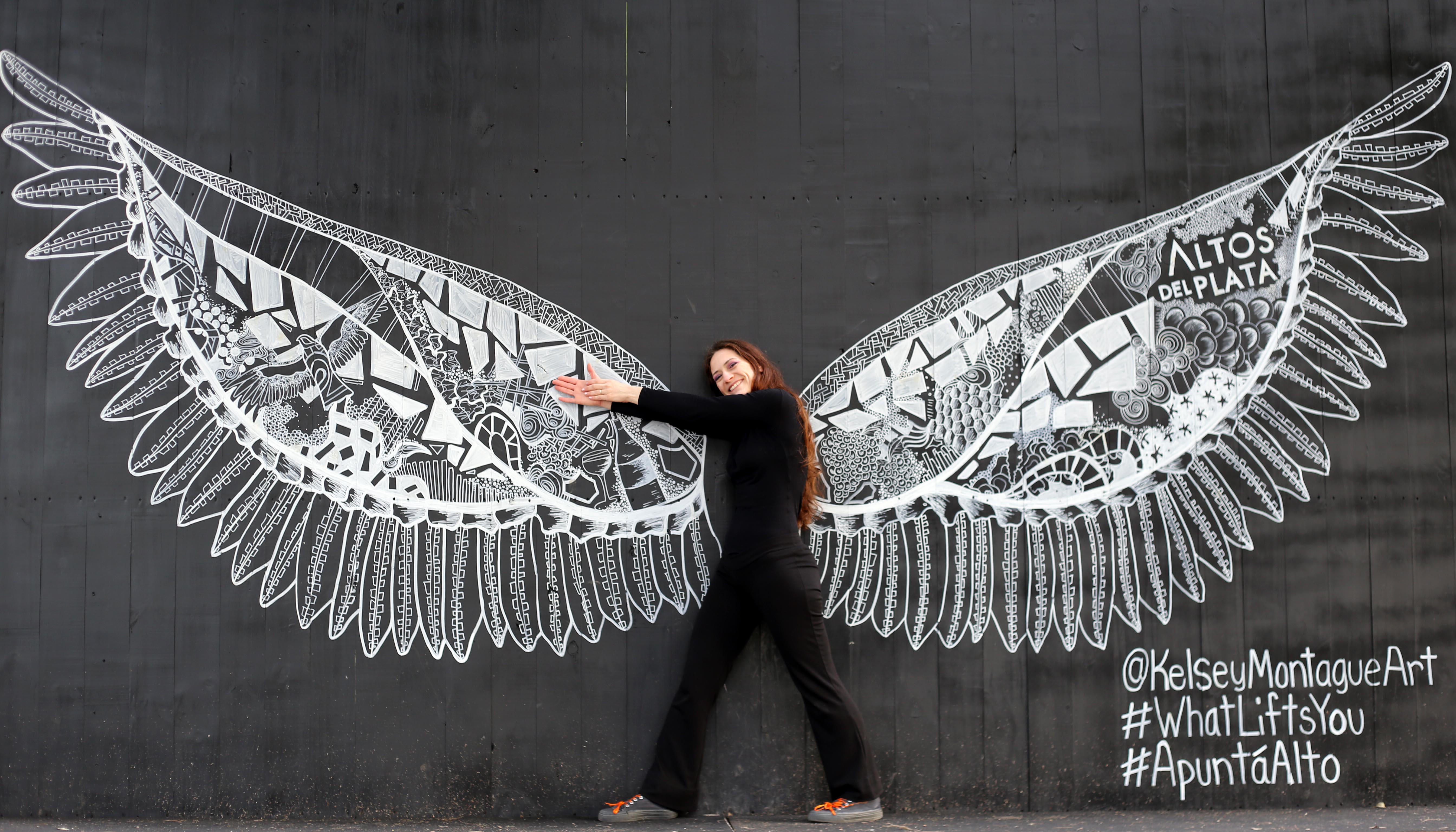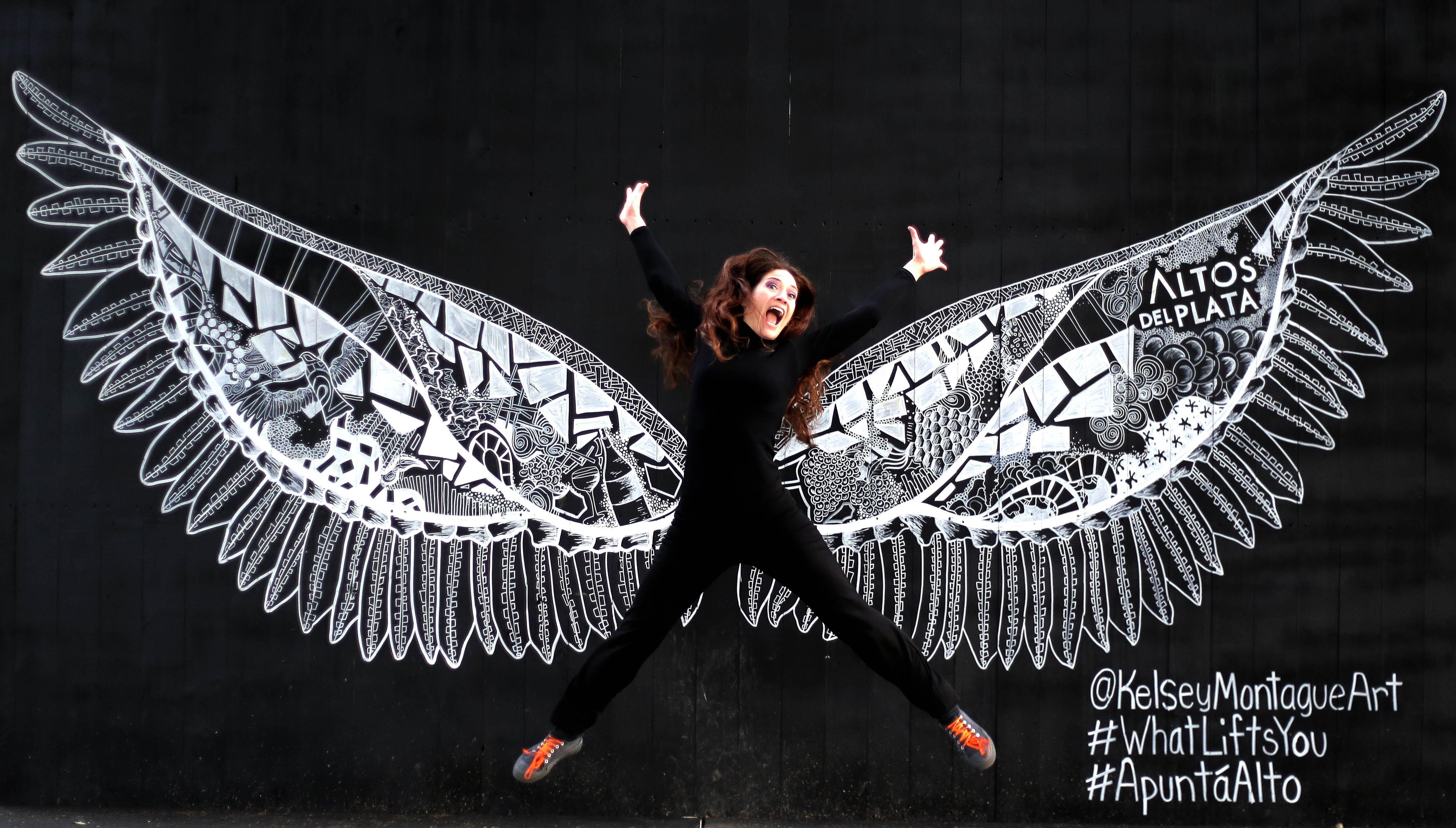 Altos del Plata, la línea joven de la bodega Terrazas de los Andes, invitó a la street art Kelsey Montague, a realizar un mural en Buenos Aires con dos alas gigantes, que invita a la gente a fotografiarse con ellas de fondo y, con los hashtags #ApuntaAlto y #WhatLiftsYou, reflexionar sobre «qué significa para cada uno apuntar alto».