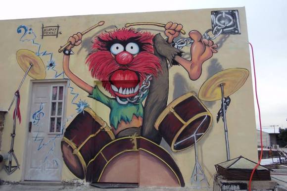 Y la otra… principalmente, es darle las gracias al vecino que nos apoya con su buena onda y alegría, que nos ofrece su pared cuando nos ve pintando en su barrio, y decirle que se siga acercando porque también son parte importante de este festival de colores que les regalamos cuando estamos frente a un muro… y por último y no menos importante, que los mates y algo para picar que nos convidan nunca están de más cuando muraleamos jajaja Gracias Totales!!!