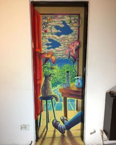 Fue ahí que se le ocurrió aprovechar la cuarentena «para tender un puente de artistas a artistas y generar ese espacio de promoción y difusión del arte emergente». Así surgió el «Primer concurso independiente de puertas intervenidas durante la cuarentena», una convocatoria abierta a todos los creadores que desearan intervenir las puertas de su casa.