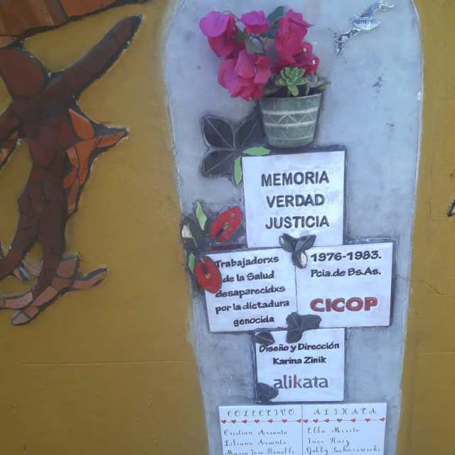 El 24 de marzo, quedó inaugurado el mural MEMORIA VERDAD JUSTICIA en la sede de CICOP, Asociación Sindical de Profesionales de la Salud de la Provincia de Buenos Aires, con diseño y dirección de la artista mosaiquista Karina Zinik @alikatakari @Alikata, en realización colectiva.