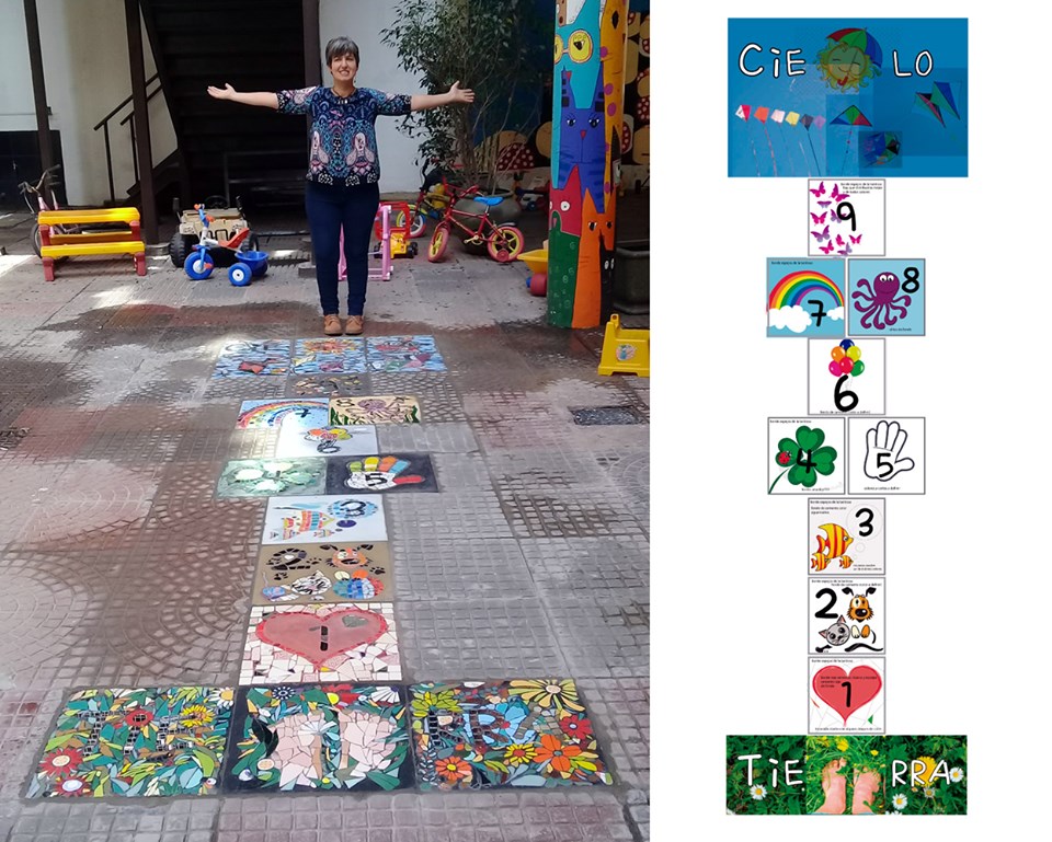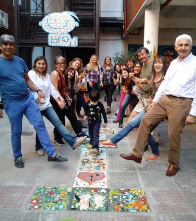 Por casualidad o tal vez no tanto, en la misma semana, con solo dos días de diferencia, el 8 y 10 de octubre, han quedado presentadas en Buenos Aires dos obras vinculadas al muralismo y la salud infanto juvenil. La primera de ellas, el 8 de octubre, la inauguración de Juegos en el Piso en Casa Garrahan, una obra mural confeccionada con la técnica de mosaiquismo, y realizada bajo la coordinación de la artista y profesora Karina Zinik, quien dejó plasmada junto a un equipo de 32 artistas, una rayuela en mosaico en el patio de dicha institución.